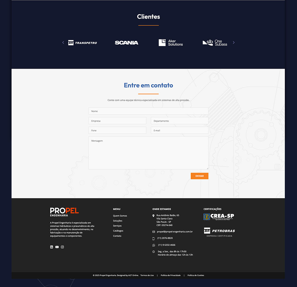 A Propel Engenharia é especializada na fabricação de sistemas hidráulicos e pneumáticos de alta pressão, atuando no mercado há mais de 30 anos.